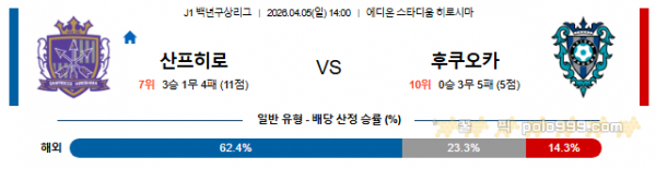 결국 후쿠오카는 초반에는 간격으로 버틸 여지가 있지만, 후반 승부처에서 산프레체 히로시마의 템포 인상과 연속 공격을 길게 감당하기에는 부담이 있는 구도다.