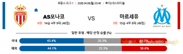 2026-04-06 03:45 리그앙 AS 모나코 vs 올림피크 마르세유