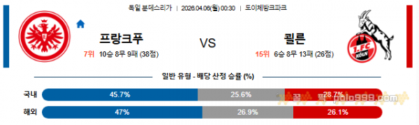 2026-04-06 00:30 분데스리가 프랑크푸르트 vs 쾰른 > 축구픽게시판