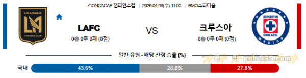 2026-04-08 11:00 CONCACAF 챔피언스컵 LA FC vs 크루즈아슬