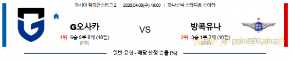 2026-04-08 19:00 AFC 챔피언스리그 2 감바 오사카 vs 방콕 유나이티드 FC