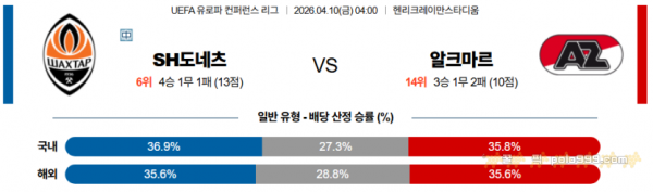 2026-04-10 04:00 UEFA 유로파컨퍼런스 샤흐타르 도네츠크 AZ 알크마르