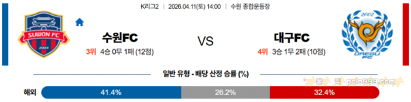 2026-04-11 14:00 K리그 2 수원 FC 대구 FC > 축구픽게시판