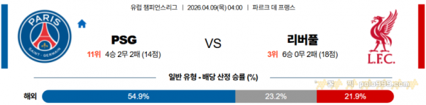 2026-04-09 04:00 UEFA 챔피언스리그 파리 생제르맹 리버풀 FC