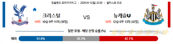 2026-04-12 프리미어리그 크리스탈 팰리스 뉴캐슬 유나이티드