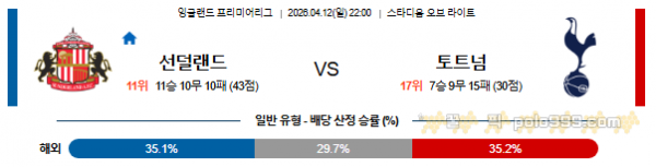 그리고 선더랜드가 홈이라서 조금이라도 라인을 끌어올리는 순간, 토트넘 입장에서는 오히려 기다리던 공간이 열릴 가능성이 크다.