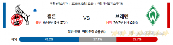 결국 홈에서 더 빠르게 앞으로 가는 쾰른 쪽이 승리를 가져갈 가능성이 높다.