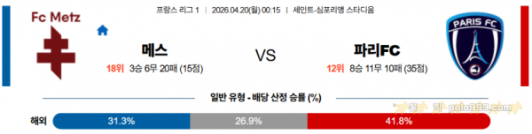 ⚠️ 후반 교체 카드의 폭발력과 파포스트 세트피스 완성도를 감안하면, 이 경기는 파리FC가 경기 막판 흐름을 뒤집어 가져갈 가능성이 높다!