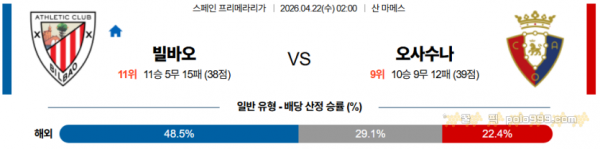 2026-04-22 02:00 라리가 아틀레틱 빌바오 CA 오사수나