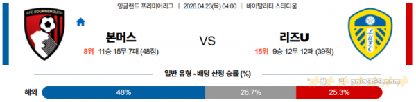 2026-04-23 04:00 프리미어리그 본머스 리즈 유나이티드 FC