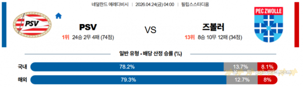 2026-04-24 04:00 에레디비지 PSV 에인트호벤 FC 즈볼레