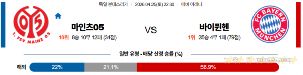 2026-04-25 22:30 분데스리가 마인츠 바이에른 뮌헨