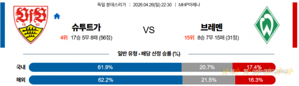 2026-04-26 22:30 분데스리가 VfB 슈투트가르트 SV 베르더 브레멘
