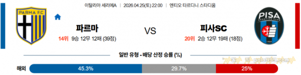 2026-04-25 22:00 세리에 A 파르마 칼초 1913 피사SC