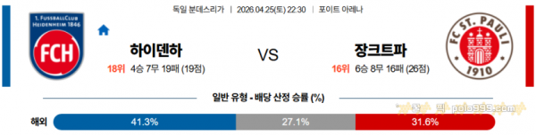 2026-04-25 22:30 분데스리가 FC 하이덴하임 FC 장크트파울리