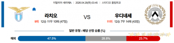 2026-04-28 03:45 세리에 A SS 라치오 우디네세 칼초
