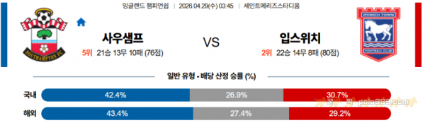 2026-04-29 03:45 잉글랜드 챔피언쉽 사우샘프턴 입스위치 타운