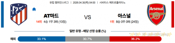 2026-04-30 04:00 UEFA 챔피언스리그 AT 마드리드 아스널