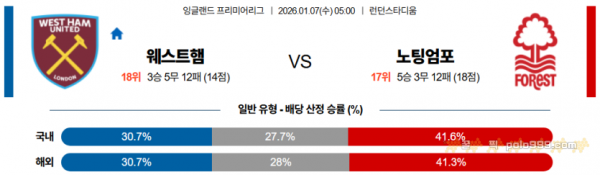 2026-01-07 05:00 프리미어리그 웨스트햄 노팅엄 포레스트