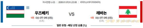 2026-01-07 23:00 U-23 아시안컵 우즈베키스탄 레바논