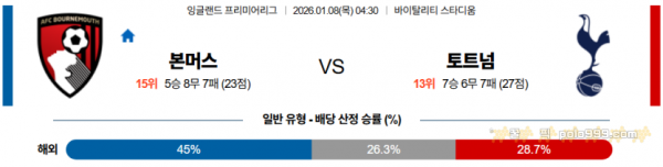 2026-01-08 04:30 프리미어리그 본머스 토트넘 홋스퍼