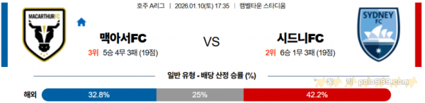 2026-01-10 17:35 호주 A리그 맥아서 FC 시드니 FC > 축구픽게시판