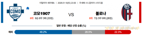 2026-01-10 23:00 세리에 A 코모 1907 볼로냐 FC > 축구픽게시판