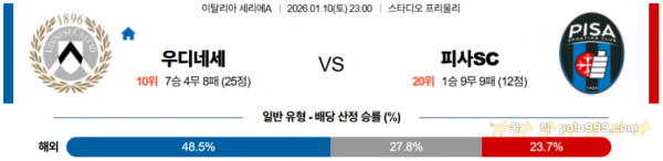 2026-01-10 23:00 세리에 A 우디네세 칼초 피사SC