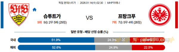 2026-01-14 02:30 분데스리가 VfB 슈투트가르트 프랑크푸르트