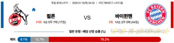 2026-01-15 04:30 분데스리가 쾰른 바이에른 뮌헨