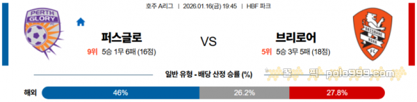 2026-01-16 19:45 호주 A리그 퍼스 글로리 FC 브리즈번 로어 FC
