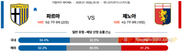 2026-01-18 20:30 세리에 A 파르마 칼초 1913 제노아 CFC > 축구픽게시판