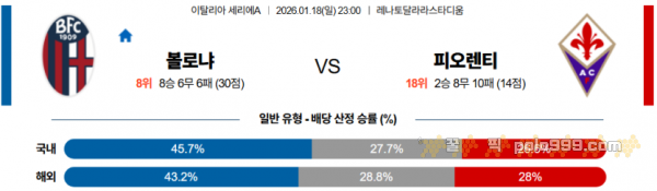 2026-01-18 23:00 세리에 A 볼로냐 FC ACF 피오렌티나