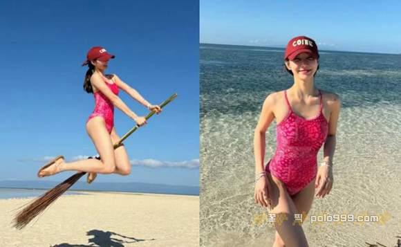 '싱글맘' 한그루, 한국 떠나 핫핑크 수영복 자태…얼마나 신났길래 공중부양까지