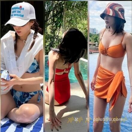 반면 비키니 사진에서는 전혀 다른 분위기가 연출됐다. 오렌지, 레드, 블루 패턴 등 다양한 비키니 스타일 속에서 허리와 골반 라인이 자연스럽게 드러나며 보다 균형 잡힌 실루엣이 강조됐다. 셔츠를 걸치거나 캡 모자를 더한 스타일링은 과한 노출 없이도 여유롭고 청량한 무드를 완성했다.