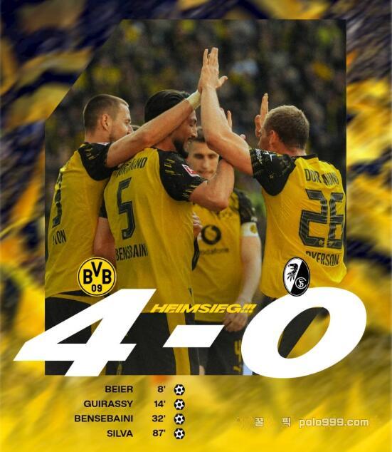 도르트문트, 전반부터 압도적 경기력으로 프라이부르크 4-0 완승 > 꿀픽 스포츠뉴스