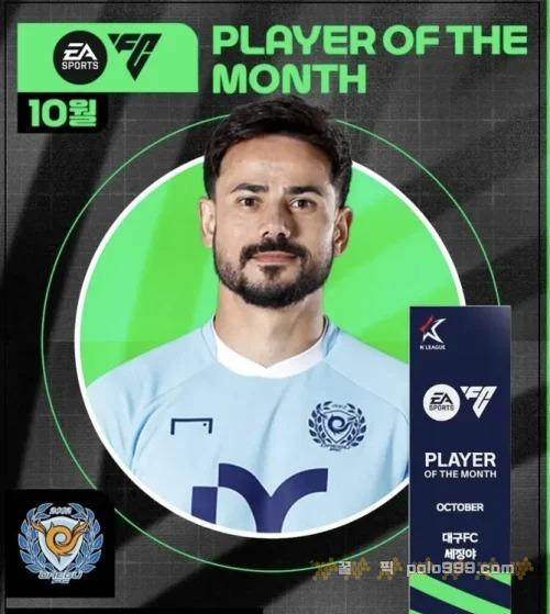 대구FC의 에이스 세징야가 10월 EA SPORTS 이달의 선수상을 수상했습니다.