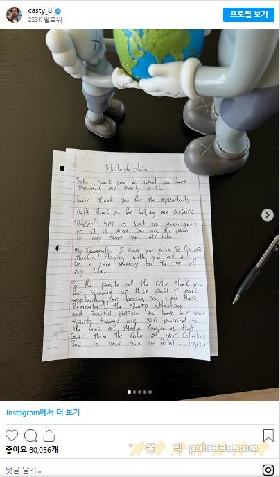 구단이 공식 발표를 내기 직전, 닉 카스텔라노스는 자신의 인스타그램에 작별 메시지를 먼저 올렸다. 그는 구단주 존 미들턴과 사장 데이브 돔브로스키에게 감사 인사를 전했고, 코칭스태프와 동료들, 그리고 필라델피아 팬들에게도 고마움을 전했다. “야유든 환호든 늘 함께해줬다”며 “지난 4년은 평생 기억에 남을 시간”이라고 적었다. 특히 아들 리엄을 따뜻하게 맞아준 것에 대해 깊은 감사를 표현했다.