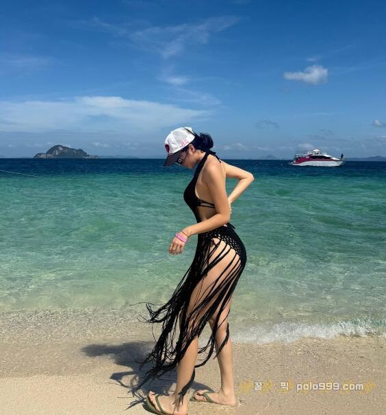 지난 5일 안지현의 개인 인스타그램 계정에 다수의 사진이 업로드됐다. 안지현은 푸른 바다를 배경으로 검은 비키니와 선글라스, 캡 모자를 쓰고 다양한 포즈를 취했다. 검은색 비키니 위 태슬 장식이 발목까지 늘어져 긴 다리와 각선미를 뽐냈다.