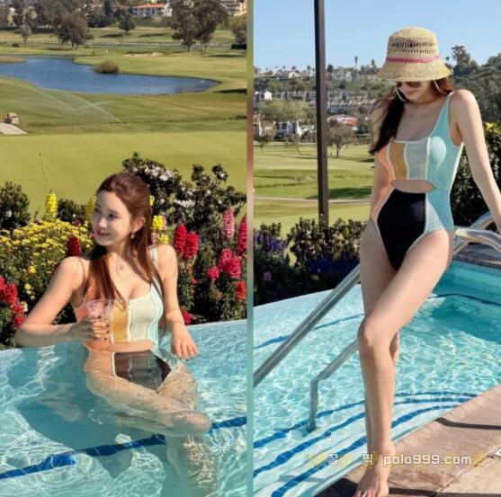 이다해가 골프장이 아닌 수영장에서의 여유로운 순간으로 시선을 끌었다.