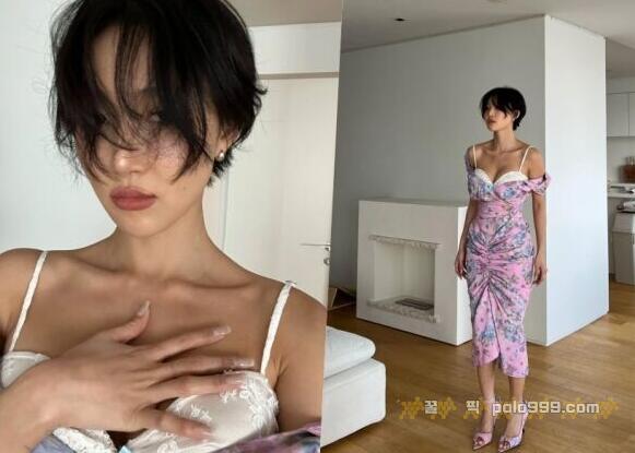 공개된 사진 속 화사는 과감한 숏커트 헤어스타일로 변신해 시크하면서도 도발적인 매력을 발산했다. 특히 화사한 핑크빛 플라워 패턴의 밀착 드레스를 완벽하게 소화하며, 가녀린 어깨라인과 은근한 볼륨감, 그리고 잘록한 허리로 이어지는 압도적인 보디라인을 드러냈다. 레이스 소재의 이너웨어를 노출한 파격적인 스타일링은 화사 특유의 당당하고 자유로운 아우라를 배가시켰다.
