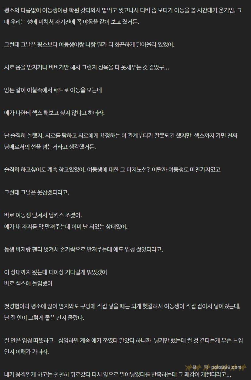 중학생 때 여동생과 ㅅㅅ중독자 된 썰 페이지 정보 작성자 안구정화 댓글 0건 조회 200회 작성일 26-03-31 20:30 목록 본문 이 집 글 잘쓰넹 중학생 때 여동생과 ㅅㅅ중독자 된 썰 이전글건담 코스프레 보고 발기 할 줄은 몰랐다 26.03.31 다음글질펀허이.. 한 번만 해보고 싶구나.. 26.03.31 댓글 0 댓글목록 등록된 댓글이 없습니다.