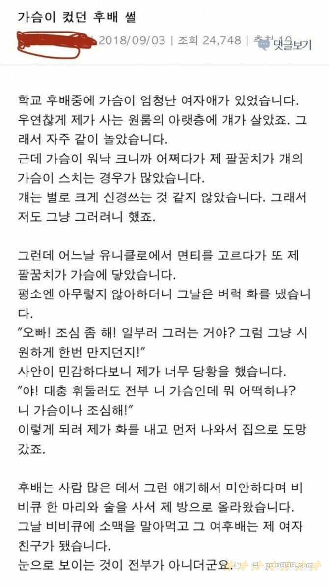 가슴이 엄청났던 여자 후배 썰 페이지 정보 작성자 안구정화 작성일 26-04-05 11:59 조회 214 댓글 0 본문 락스 가져와라 ;; 가슴이 엄청났던 여자 후배 썰 이전글 가슴 사이즈가 무려 E컵이라는 치어리더 다음글 튜닝후 자슴감이 넘쳐 흐르는 우수한 치어리더 댓글목록 0 등록된 댓글이 없습니다.