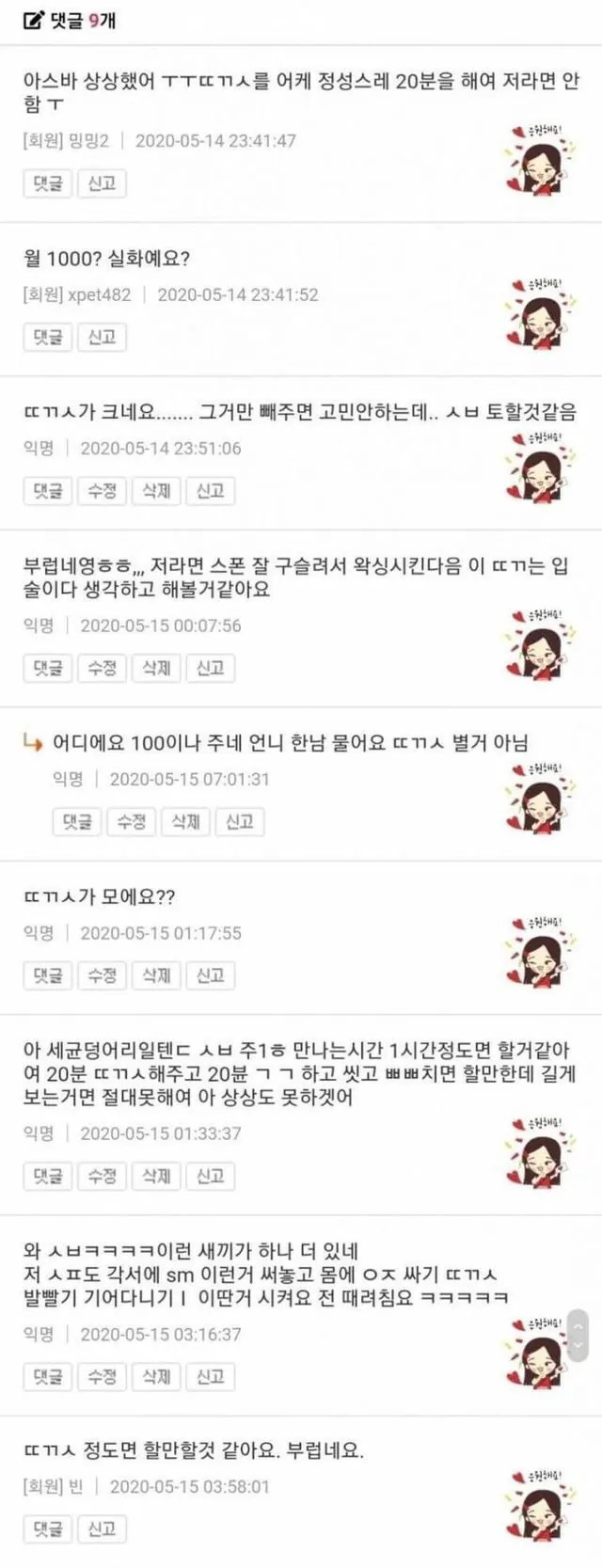 월 1000 스폰 받는 여자의 고민 페이지 정보 작성자 안구정화 댓글 0건 조회 179회 작성일 26-04-27 00:19 목록 본문 월 1000 스폰 받는 여자의 고민 이전글나는 진짜 하루종일 할 수 있음.. 26.04.27 다음글9 26.04.26 댓글 0 댓글목록 등록된 댓글이 없습니다.