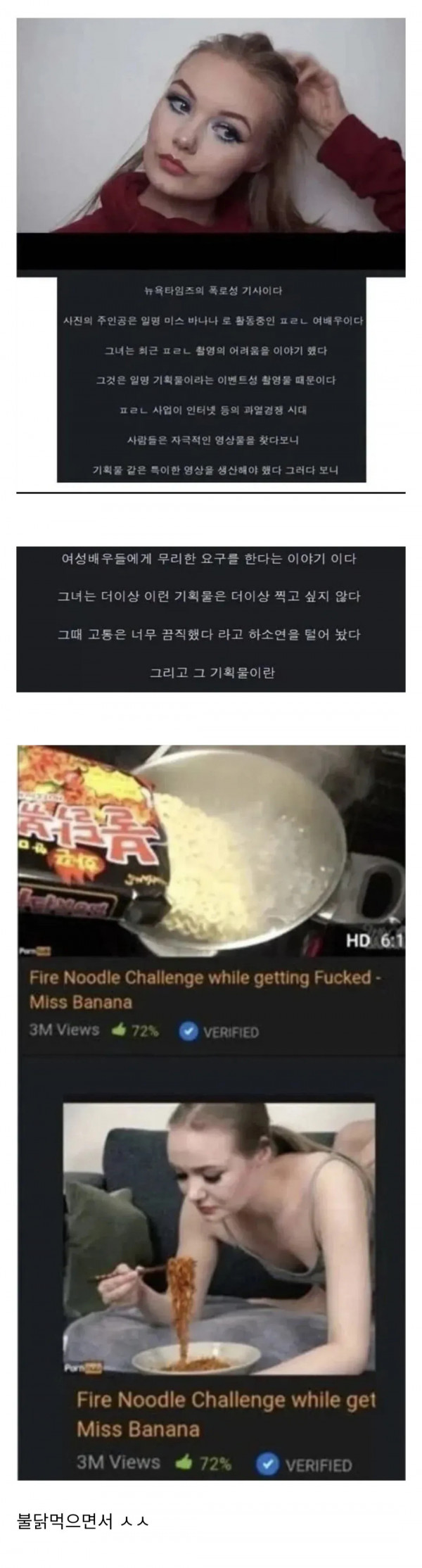 미국 포르노 여배우가 폭로한 가장 최악의 촬영 페이지 정보 작성자 안구정화 댓글 0건 조회 193회 작성일 26-04-27 11:48 목록 본문 미국 포르노 여배우가 폭로한 가장 최악의 촬영 이전글17 26.04.27 다음글대학 도서관 애정행각 근황 26.04.27 댓글 0 댓글목록 등록된 댓글이 없습니다.